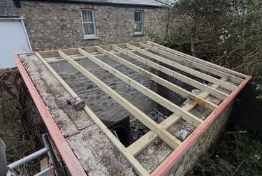 High performance flat roofing installations using EPDM, fibreglass and felt systems.